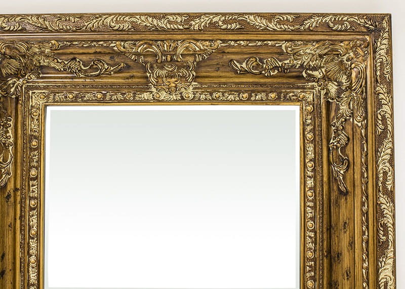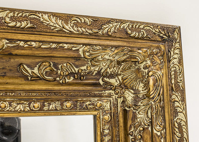 Duże lustro w pięknej drewnianej ramie. Rama lustra wykonana jest z drewna.